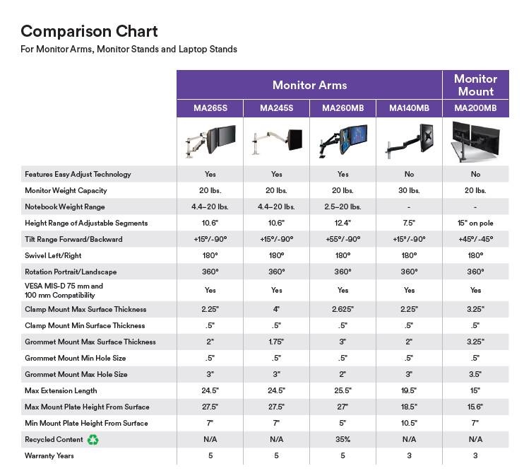 Experience the productivity benefits of using two displays: two LCD monitors or pair an LCD with laptop by purchasing the laptop tray attachment. Save valuable desk space and easily move your monitor to a comfortable height for viewing reducing eye, back and neck strain. Highly adjustable arm moves smoothly up and down through 10.6 in height adjustment range with just a touch. Arm also moves in and out and side to side with ease so you can move your monitor out of the way when not in use or share your screen with others. Made from aluminum alloy and metal materials for an elegant yet strong and stable design. Easy to install comes with both clamp and grommet hardware included. Internal cable management route cables neatly under arm. For VESA MIS-D 75x75/100x100mm compliant monitors up to 20 lbs and <= 27 in.